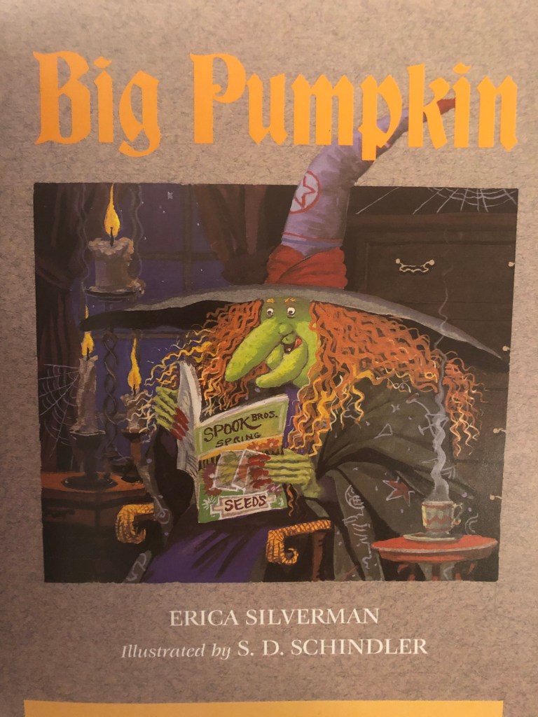 It took us all probably a full three minutes to recompose ourselves after that, but the giggles didn’t fully go away until we got to the page where the ghost “boasted” about his size and strength. Summerly said she didn’t like that he was being boastful. We discussed that it was true that the ghost was bigger and stronger than the witch, so it all depended on how he pointed out those facts: did he offer to lend a hand with the pumpkin in a helpful way, citing the likelihood that he could wrest the gourd from its vine by virtue of his physical capabilities? Or did his tone indicate a superiority complex, as suggested by the word “boast”? Since this book features rhyming, I suggested that he was being helpful, and the author used the word “boast” because it rhymes with “ghost” (“Look, guys! Isn’t it cool how words that are spelled so differently can still rhyme?”). However, when we encountered the next character, a vampire, he repeated the line the ghost used about being larger and mightier, again described as boasting. Since “vampire” and “boast” certainly do NOT rhyme, we decided that we wanted to change the motivation of these characters to make them helpful rather than self-aggrandizing. I read the line using the word “said” in place of “boasted”, but Summerly pointed out that at school they’re trying to use alternatives to “said” in their writing. So, for each of the characters we encountered until the end of the book, all who came to boast about their largesse and musculature, we substituted a different word each time. In our version, the ghost mentioned, the vampire exclaimed, and the mummy remarked. Then we discussed that the mummy identified as female, but we only knew this based on the use of feminine pronouns in the book to refer to her because, well, mummies are kind of inscrutable when it comes to identifying gender. Maybe the author chose to make the mummy a “she” because “mummy” also means “mommy”, one child said. Summerly also noticed that the word “and” appears on most of the pages of the book, to which Arlo added that “and” is one of his sight words. Then he sang the “sight words” song from school. We went on to discuss the author’s decision to rely heavily on repetition as well as rhyme, and why she may have chosen to incorporate so many words that, when spoken, sound like their meanings, prompting Summerly to ask if she could bring the book to school to show her teacher the examples of onomatopoeia.
