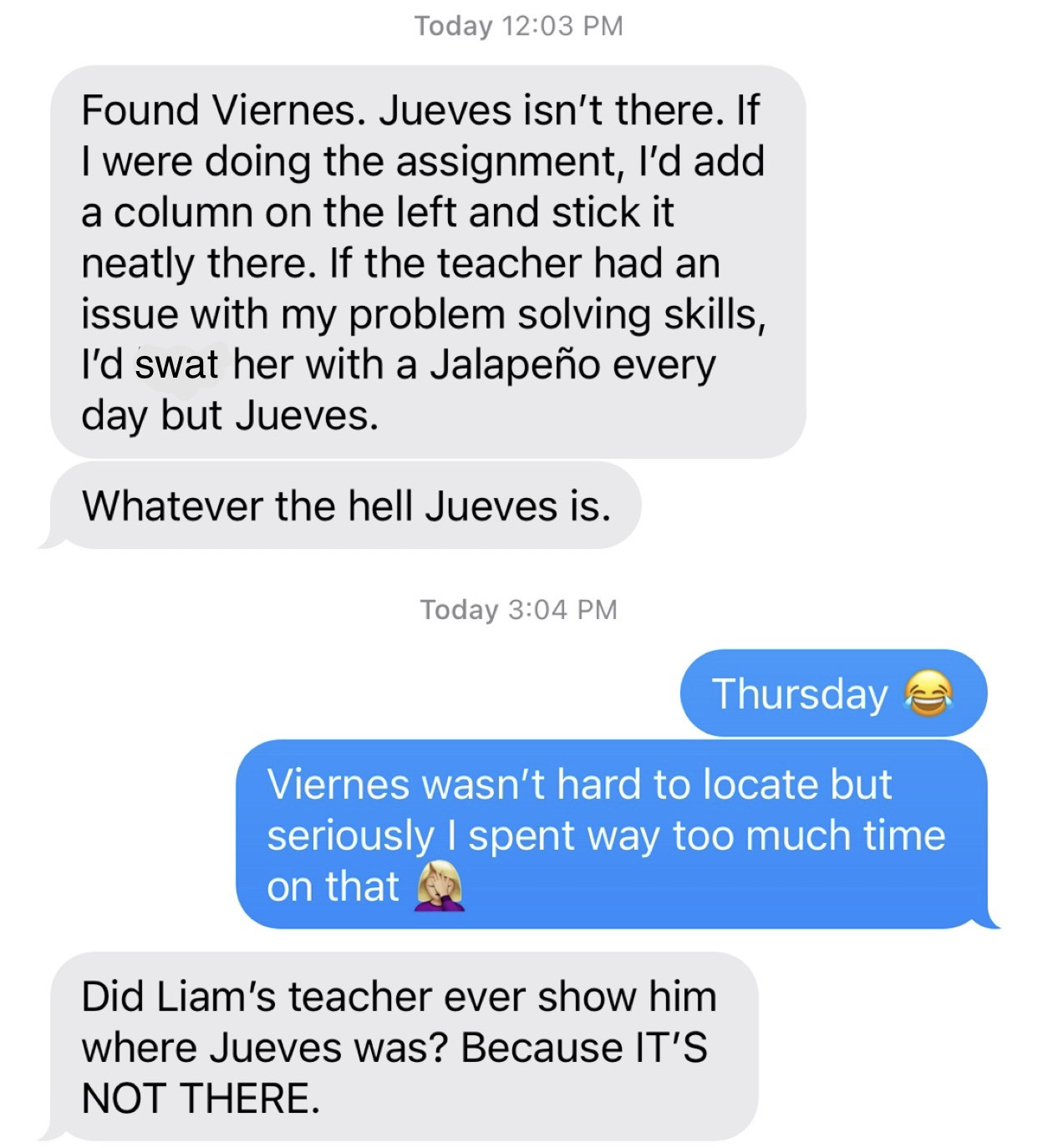 I’m not saying I’m glad that he injured his knee jumping hurdles during middle school track practice with a bunch of spry, limber teenagers. I wouldn’t wish him the discomfort, inconvenience, mental distress or physical chagrin that the strain entailed, but I know we wouldn’t have made as much progress with the daunting house chore if he hadn’t been excommunicated from his cross-trainers that week. And I will admit that while I listened to the Hoovering music coming from the carpet above my head, an arrangement composed by a vacuum virtuoso other than myself, the phrase that bannered across the home screen of the wickedest corner of my wifely mind read “Your pain, my gain.”