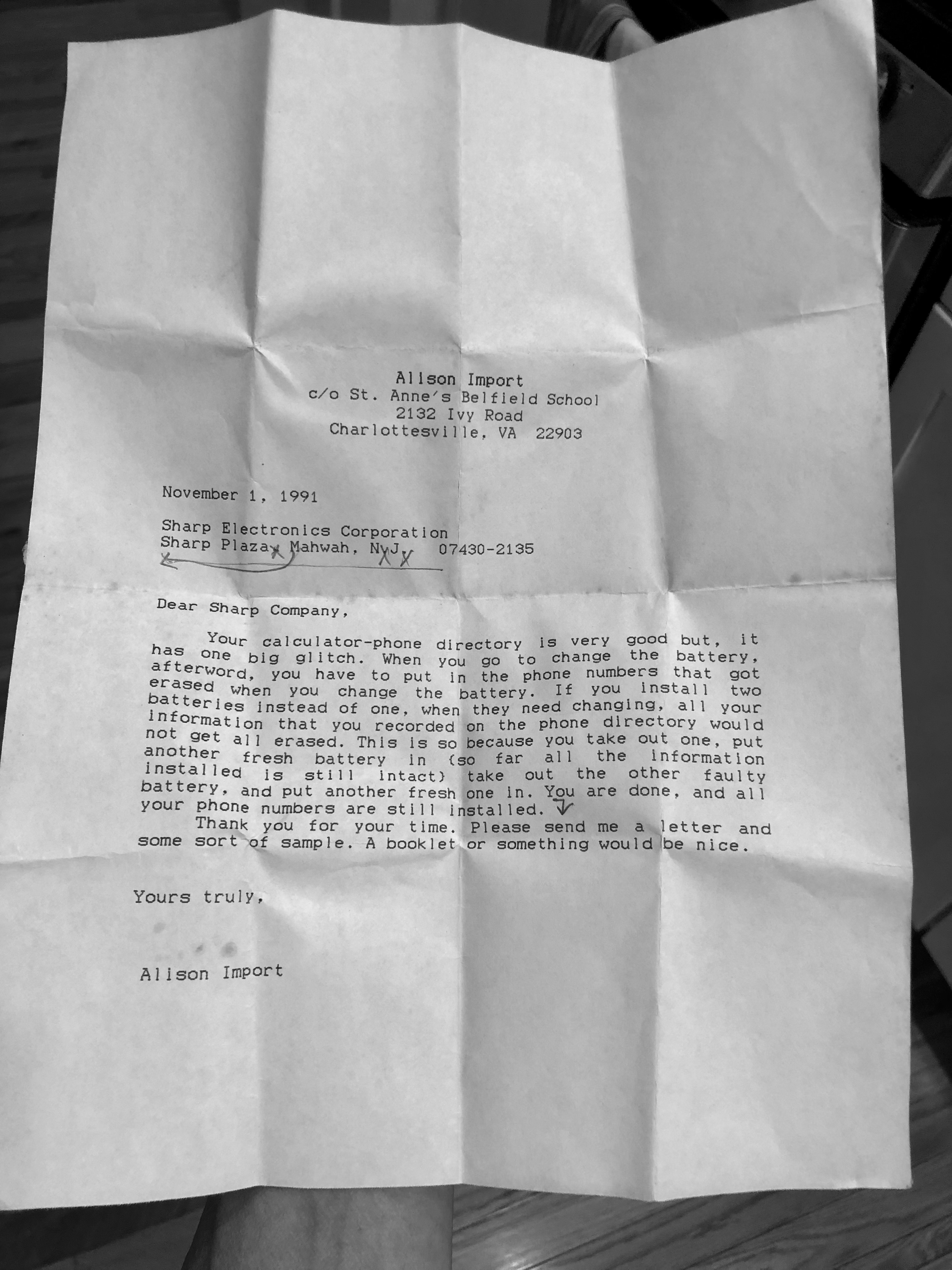 I’m not sure the Sharp Electronics Corporation appreciated my advice, however, because I’m still waiting on that letter and sample. Maybe if I’d had a better editor and mentioned my age, they’d have chuckled over this and slipped in the mail a booklet, perhaps, or something else nice.